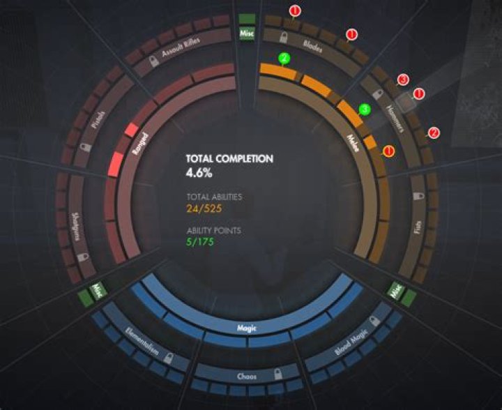 [CLICK TO ENLARGE] The weapon wheel is a ring of abilities to purchase that are categorized into Melee, Magic, and Ranged segments. Each category is fur...