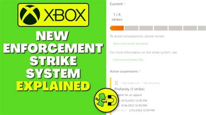 A new strike system has been implemented for the Xbox platform. Depending on the strikes receive, you could lose service for up to a year.